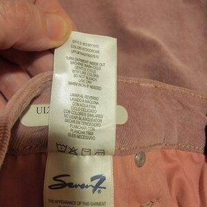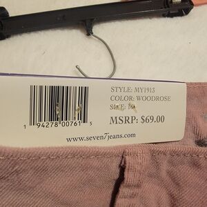 New with tags Seven 7 Ladies Ultra High Rise Skinny Corduroy Jeans in size 16 with a pink color. They feature a zip and button closure, a 5-pocket design, and a slim fit. The fabric is medium wash denim with a high rise waist and a 36-inch waist size. These jeans have a straight style and a 28-inch inseam, making them a stylish and flattering choice for women. Msrp $69.