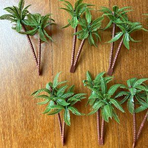 Vintage Seven (7) Palm Tree Sets and Hawaiian Ukulele Playing Man Plastic Cake Toppers