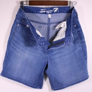 Seven 7 Shorts Womens Sz 8, Fits 32x7 Blue Faded Stretch Denim Preppy Bermuda