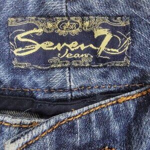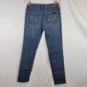 Seven 7 Skinny Jeans Blue Denim Embroidered Pockets Stretch Womens Size 26 EUC