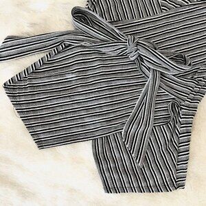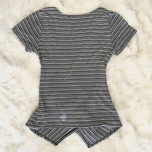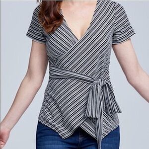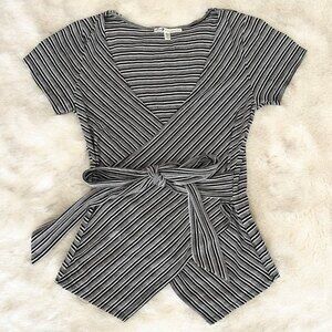 Seven 7 Striped Tie Front Ribbed Short Sleeve Blouse Shirt Top Size Small