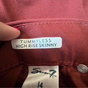 Seven 7 Tummy Less High Rise Skinny Jeans, Fired Brick Red Burnt size 14