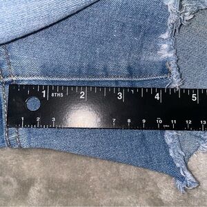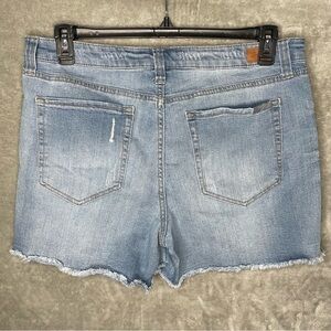 Seven 7 Weekend Short Blue Distressed Cutoffs Zip Up Mid-Rise w/ Pockets Size 14