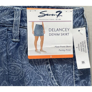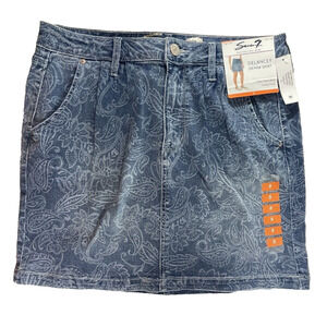 Seven 7 Womens 14 Weekend Blue Jean Denim Stretch Mini Skirt Paisley Pattern - Medium blue wash, stretch denim & slight pleating in front. MSRP $59. NEW WITH TAGS.