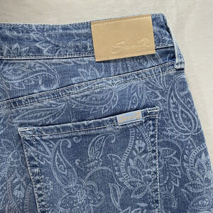 Seven 7 Womens Sz 14 Weekend Blue Jean Denim Stretch Mini Skirt Paisley Pattern
