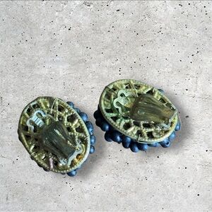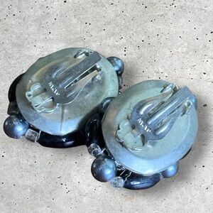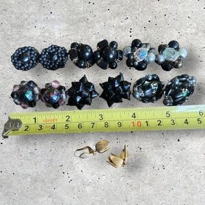 Seven 7 pairs vintage clip on estate earrings in blacks and grays marked Japan