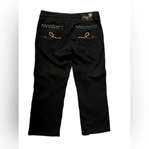 Seven Cameron Black Straight Leg Gold Detail Jeans Size 32