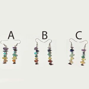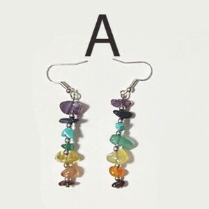 This item is new. Please note that these earrings are natural stone, so every piece is different. Each pair is photographed individually labeled by letter, so you know which pair you will receive. All contain amethyst, lapis lazuli, blue howlite, green aventurine, citrine, carnelian, and garnet.