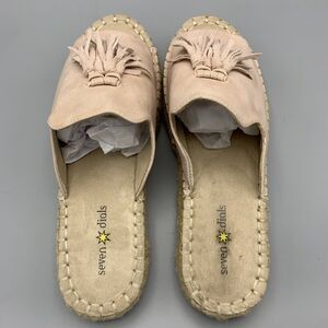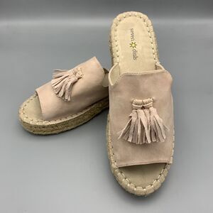 Seven Dials Sandals, Women's 8.5, Faux Suede Espadrille, Open Toe Tassled Pink
