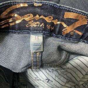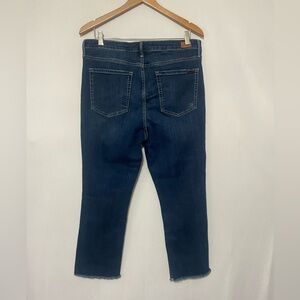 Seven EUC high rise semi crop raw hem dark wash stretch denim size 14
