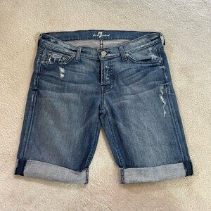 Seven For All Mankind Blue Jean button fly Shorts - Women's size 26 with rolled hem and longer leg.