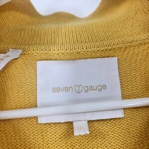 Seven Gauge Mens Sweater Yellow 100% Wool Knit Collared V-neck Pullover Size L