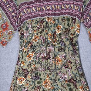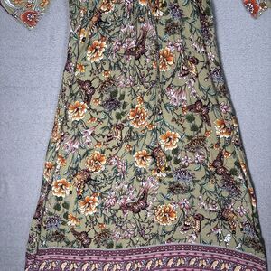 Seven Islands Dress XL Green Pink Floral Boho Gypsy Maxi Goblincore Forest Fairy