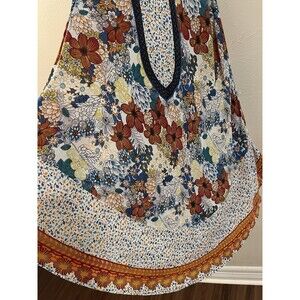 Seven Islands Medium Floral Sleeveless Sun Dress Tie Straps Boho Cottage Rayon
