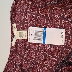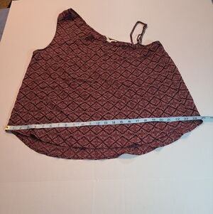 Elevate your style with this chic geometric pattern one-shoulder top. Featuring a stunning rust base with geometric patterns, this top is perfect for any occasion. The Seven Sisters Extra Large Women's Floral One-Shoulder Top in Rust is a stylish and versatile top suitable for various occasions such as travel, parties, or casual wear. Made from a blend of 97% polyester and 3% spandex, this blouse features an adjustable and removable strap for a personalized fit. With a sleeveless design and a flattering one-shoulder neckline, this top is perfect for the summer, fall, and spring seasons. The geometric pattern theme add a touch of class to this lightweight and easy-care garment. Perfect for adding a pop of color and style to your wardrobe. See photos for measurements approximate. NWT retail value $ 34.00