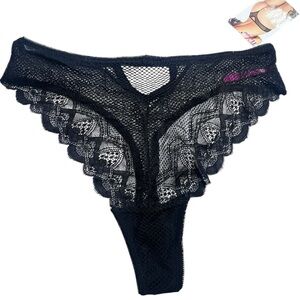 Seven TIL Midnight Lace Net High waisted Thong Keyhole Back Black L XL 1/2X 3/4X