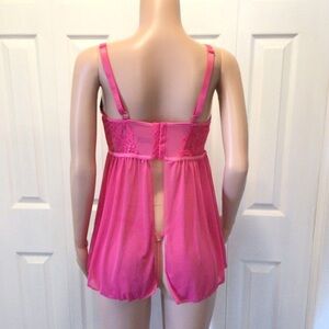 The solid pattern and hot pink color add to the overall appeal of this Camisole Set. The unlined and underwire features provide a natural and flattering silhouette. Garment Care is a breeze with this Nylon Blend material. Get ready to turn up the heat with this Seven 'til Midnight Babydoll Lingerie Set, perfect for any occasion.