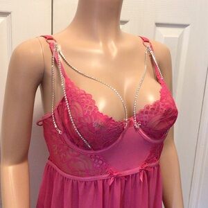 Seven Til Midnight 2pc Hot Pink Yank Her Chain Babydoll Lingerie Set Size XL. New with tag. From smoke free home. (Stock model photos in green is to show fit only. Set for sale is pink.)