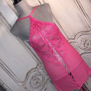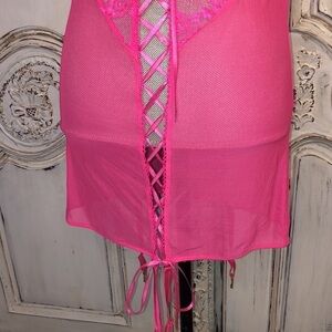 Seven Til Midnight Hot Pink Net Corset Style Nighty Size Queen