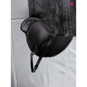 Seven Til Midnight Sheer Bustier Top with Garter Straps 1X/2X Black Bows