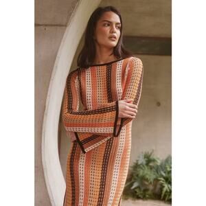 Seven Wonders Aimee Crochet Knit Midi Dress Orange Multi Beach Coverup Bodycon S