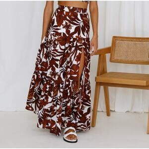 Seven Wonders brown and white floral tiered full maxi skirt slit small resort