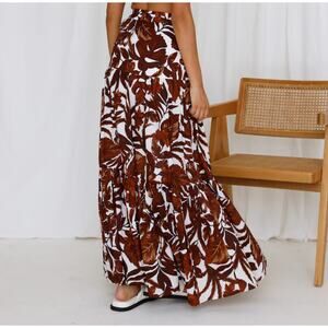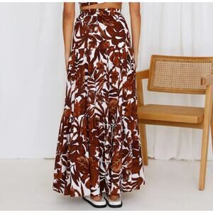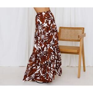 Seven Wonders Lorelie brown and white floral tiered full maxi skirt small resort