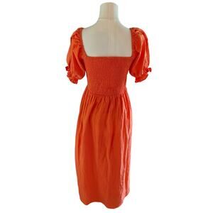 Seven Wonders Orange Puff Sleeve Smocked Cotton Milkmaid Midi Dress M Cottagecor