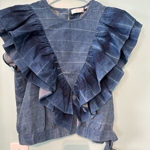 Seven by all Mankind medium denim ruffle crop top shirt blouse