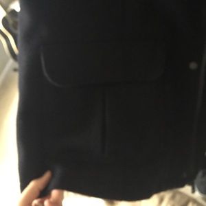 Only been worn once. Beautiful Navy wool with grey lining. Retails for over $700