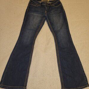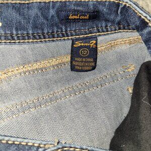 Ladies Seven jeans. Size 12 with 32 inseam. Worn on 1 side of pant leg as pictured. Lite and stretchy. Mid-Rise. Dark wash. Same or next day shipping. Discount for bundling.
