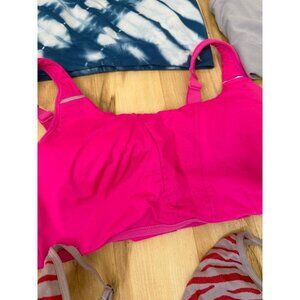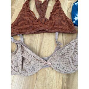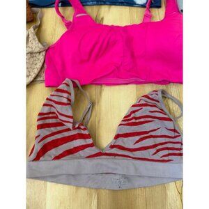 Comes with all the bras shown in the photos, brawls, some brands include PUMA, Marilyn Monroe, SPYDER combination of large and extra large sports bras and other has some piling in minor staining