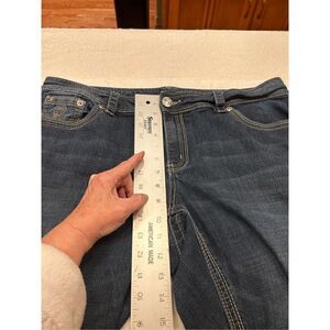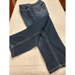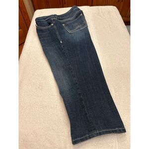 Seven 7 dark blue Capri pants. Size 18 pattern on back pockets. Very good condition. See photos for additional details