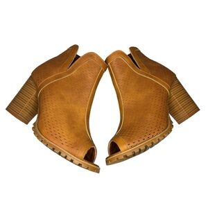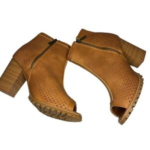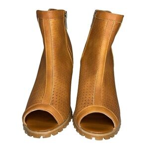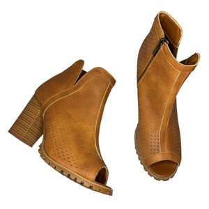 Tags- boho chunky contemporary peep toe perforated faux leather ankle boot heeled booties