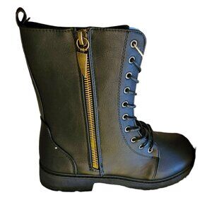 Seven7 Black Boots Mr. Zipper Brass Side Zip Lace-up Faux Leather Size 10 JJ3363