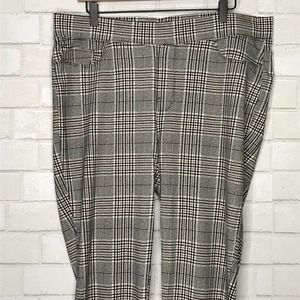 Stylish plaid leggings by Seven7. Features a classic black, brown and white pattern. Perfect for casual or formal wear.
