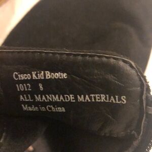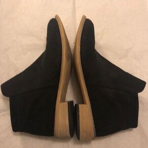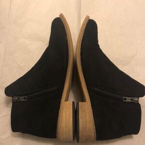 of suede. Has side zipper for easy wear. Great for everyday wear. Gently worn and only has minor tiny scuff as shown in pic.