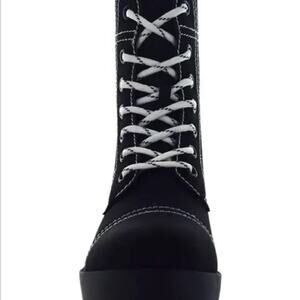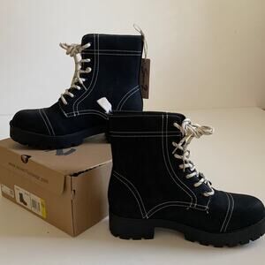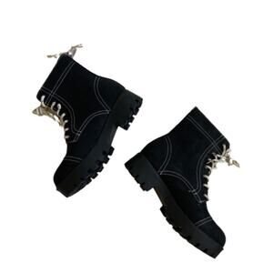 Seven7 Combat Boots Jodi Black Faux Leather Lace Up Contrast Stitching Size 10