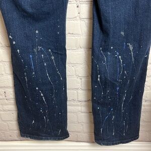 Dark wash. Pain splatter detail throughout. Size 20. Soft with a hint of stretch.