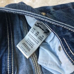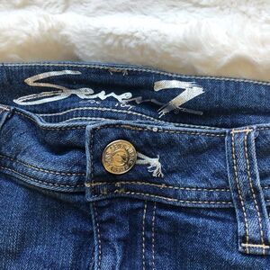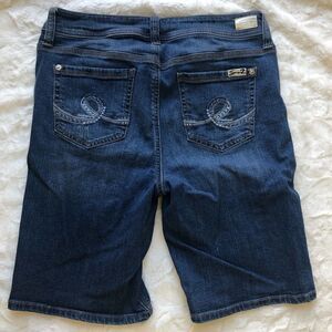 Medium Wash Distressed Seven7 Bermuda Shorts.