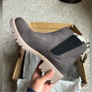 Stylish gray heeled boots. Durable and comfortable. Perfect for any occasion.