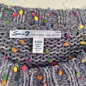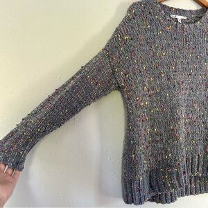 🦋 Seven7 Grey Popcorn Confetti Pom Pol Sweater Small Oversized Colorful Rainbow