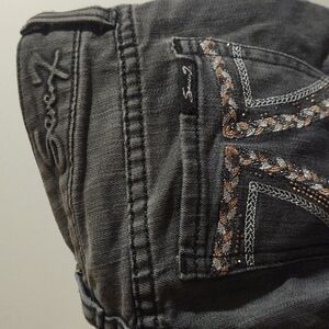 Seven7 Grey Wash Skinny Jeans with Embroidered Pockets Sz 2