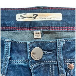 Seven7 High Rise Skinny Dark Wash Distressed Jeans Slit Ankle Raw Hem size 14W