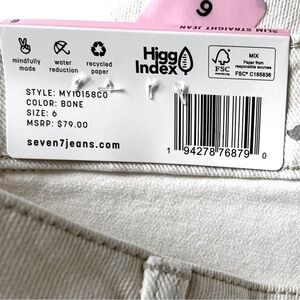 Brand new with tags, never worn, Seven7 Premium Brand, Size 6, Slim straight, stretch, high-rise, fitted through hips, modern straight leg, button & zipper front closure, functional front and back pockets, color is Bone,99% Cotton, 1% Spandex, please see pictures for approximate measurements of inseam & waist