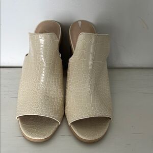 Seven 7 mules, Isabella mule shoes, cream crocodile texture, women’s size 6 shoes, block heel sandals, slip-on mule heels, faux leather shoes, minimalist sandals, neutral heels