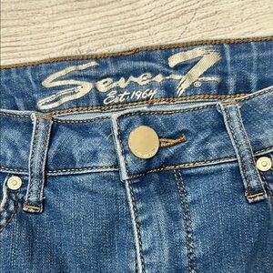 Stylish blue jean shorts. Classic five-pocket design. Rolled cuffs for a casual look. Perfect for everyday wear.
