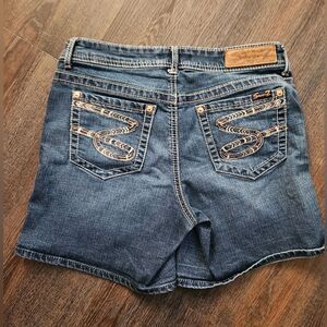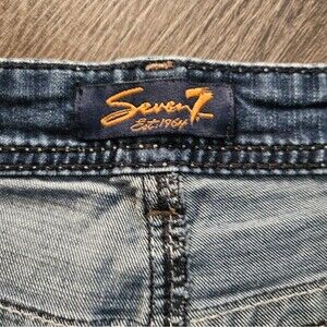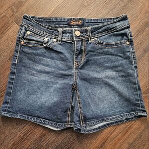 Seven7 Jeans Shorts Sz 6 Stretch Blue Denim Embroidered Pockets 28" Waist EUC
