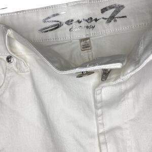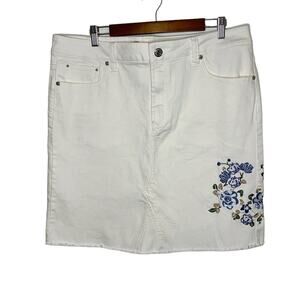 Seven7 Jeans White Denim Embroidered Blue Floral Frayed Hem Mini Skirt Size 16