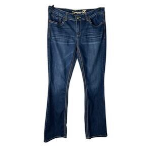 Seven7 Jeans Womens 14 Blue Bootcut Thick Stitch Embroidered Flap Pockets Denim